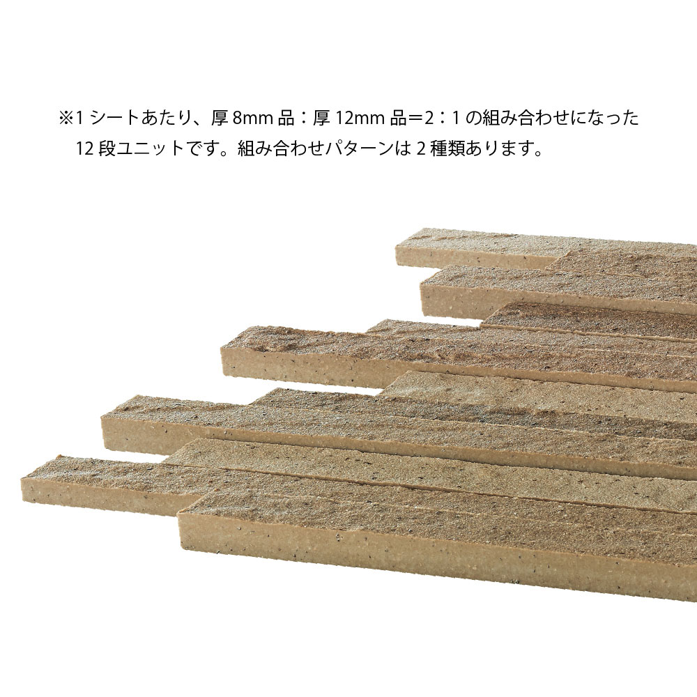 ● ボーダーネは、1シートあたり厚8mm品と12mm品が 2:1の組み合わせになった12段ユニットです。組み合わせパターンは2種類あります。
