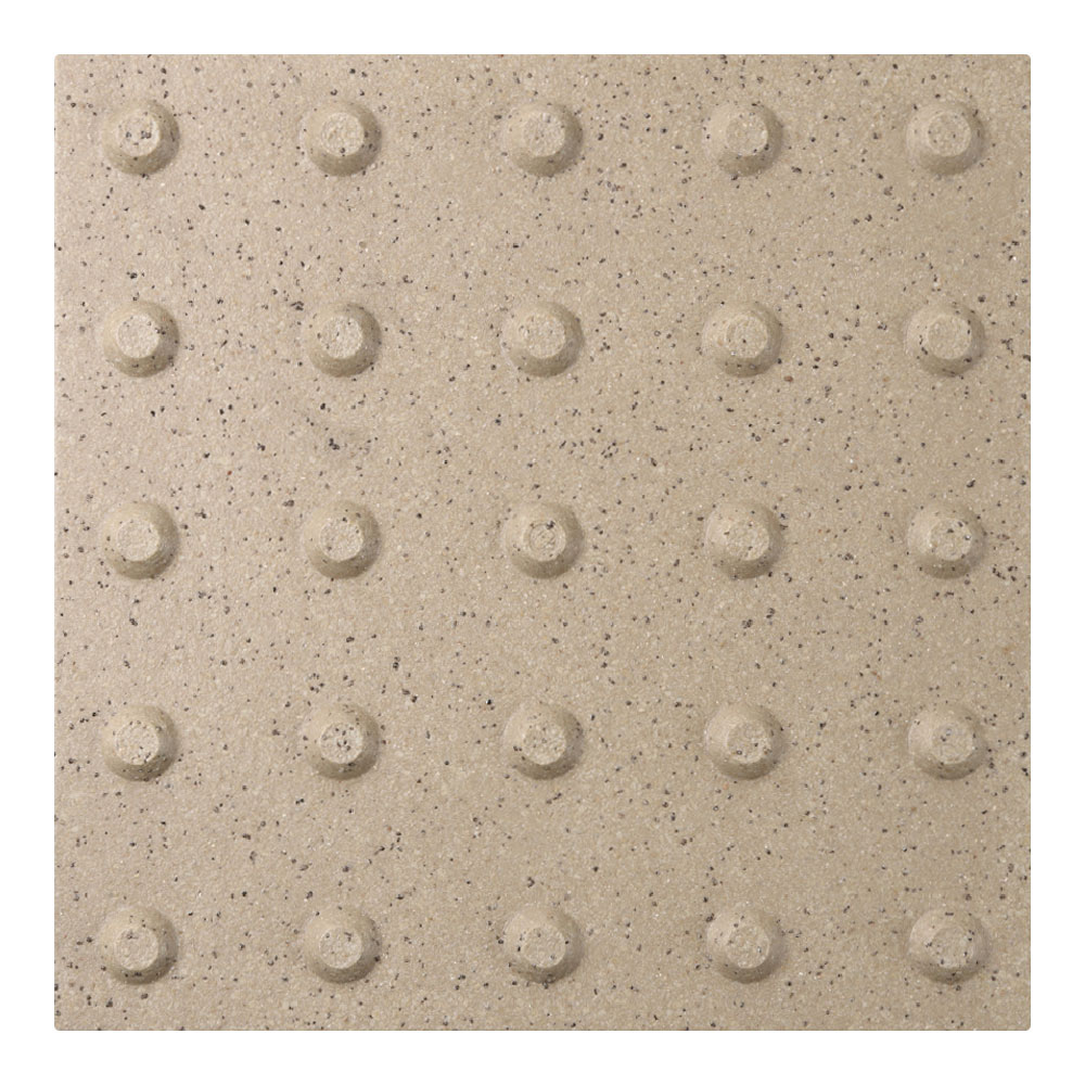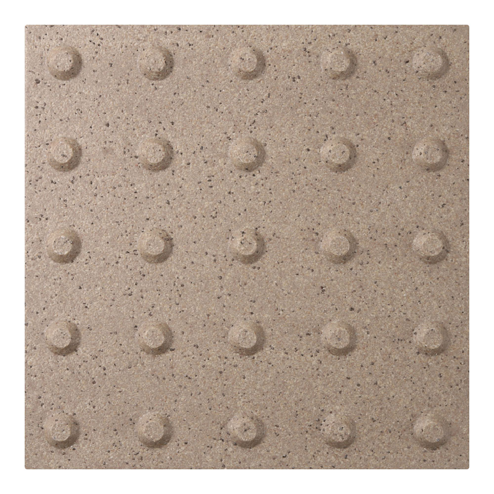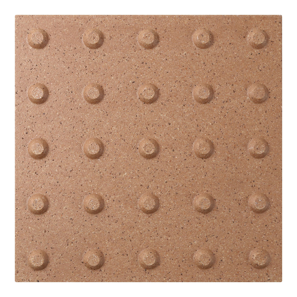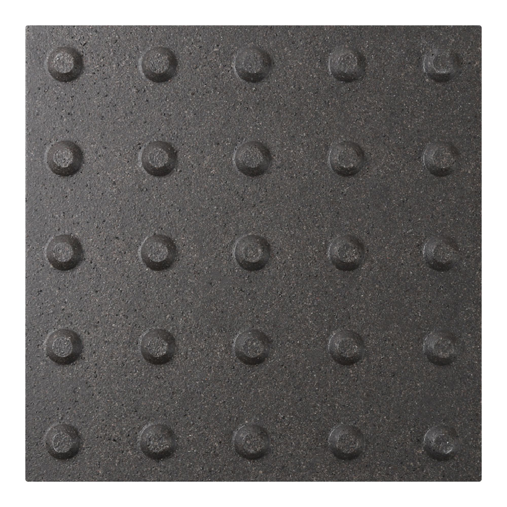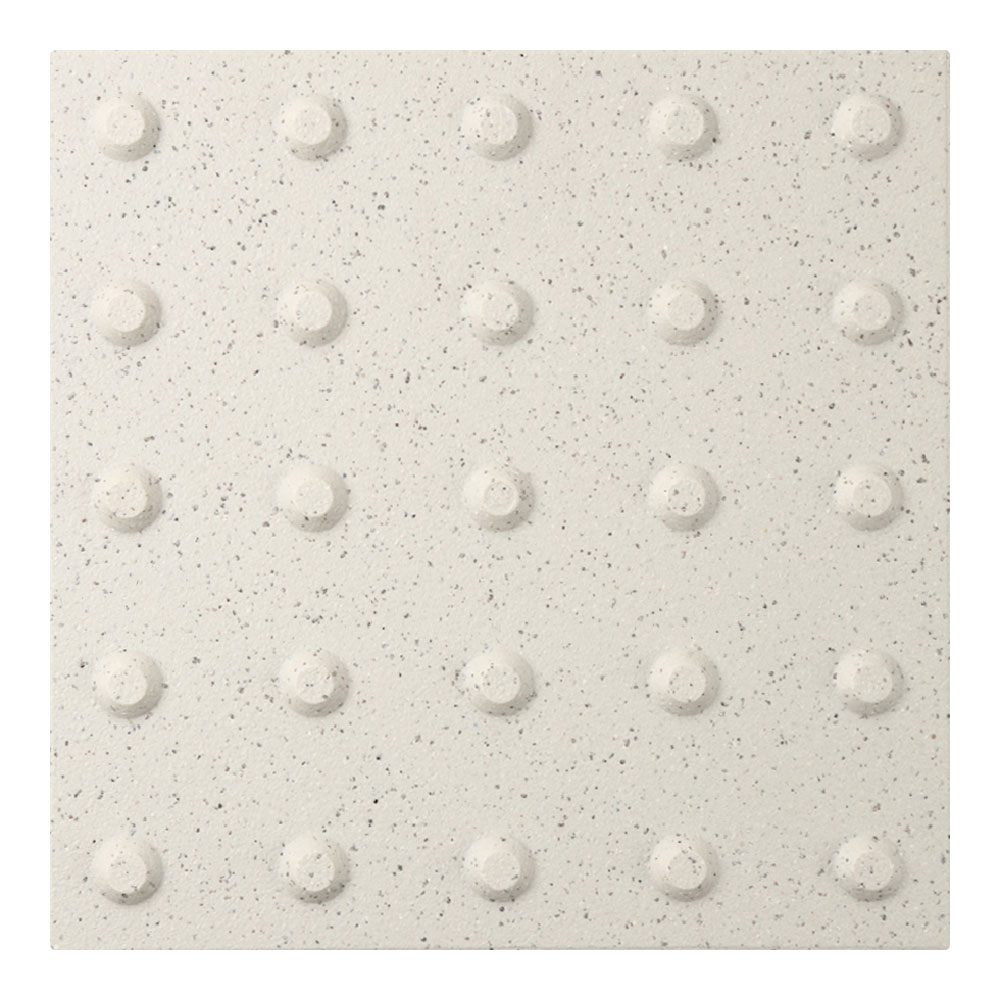 ●スロープ床タイルは車椅子での走行時にガタツキが少なく、高齢者のすり足歩行でもつまずきにくい突起部の高さを追求しました。凸凹がスムーズな歩行を支え、滑りにくい表面加工です。
