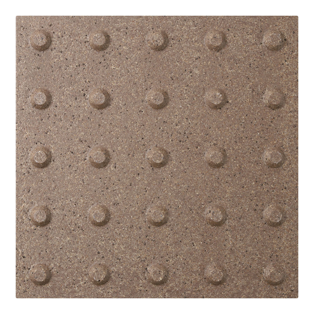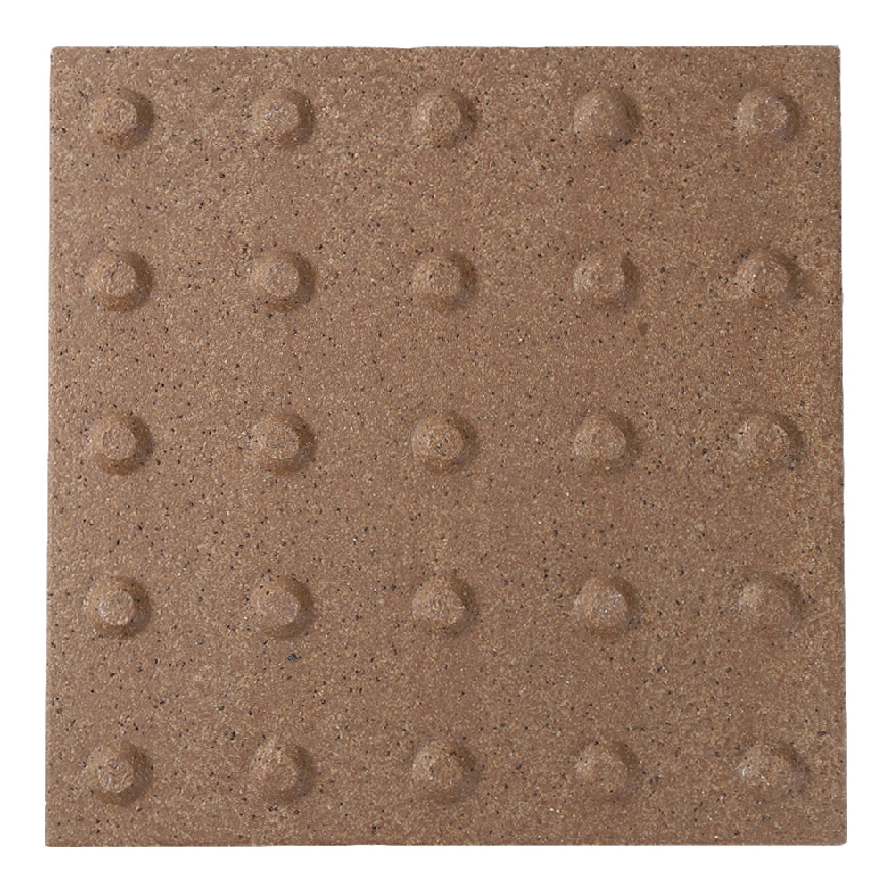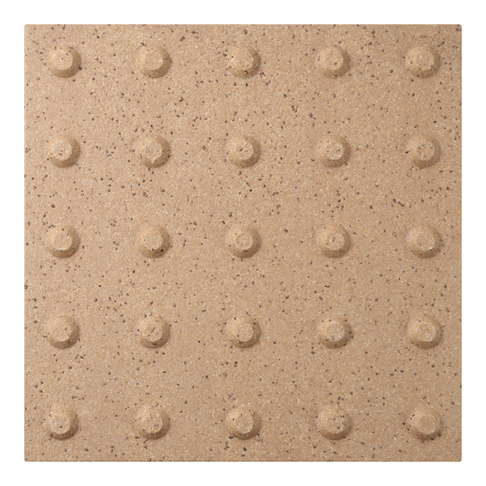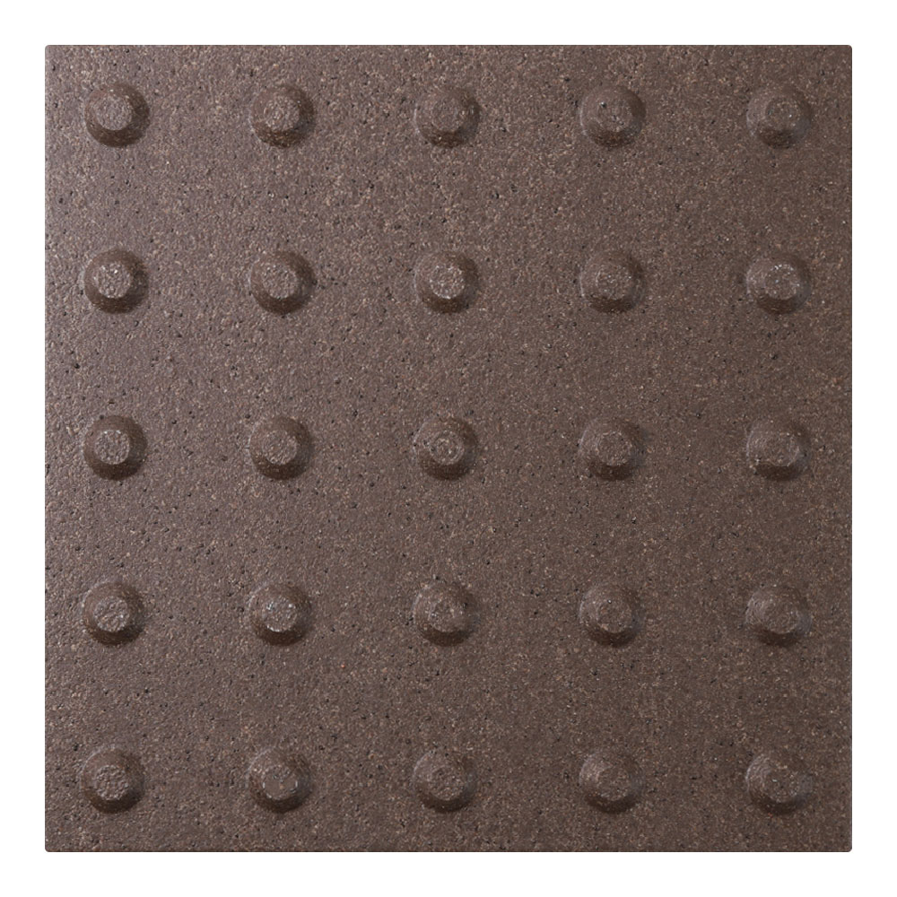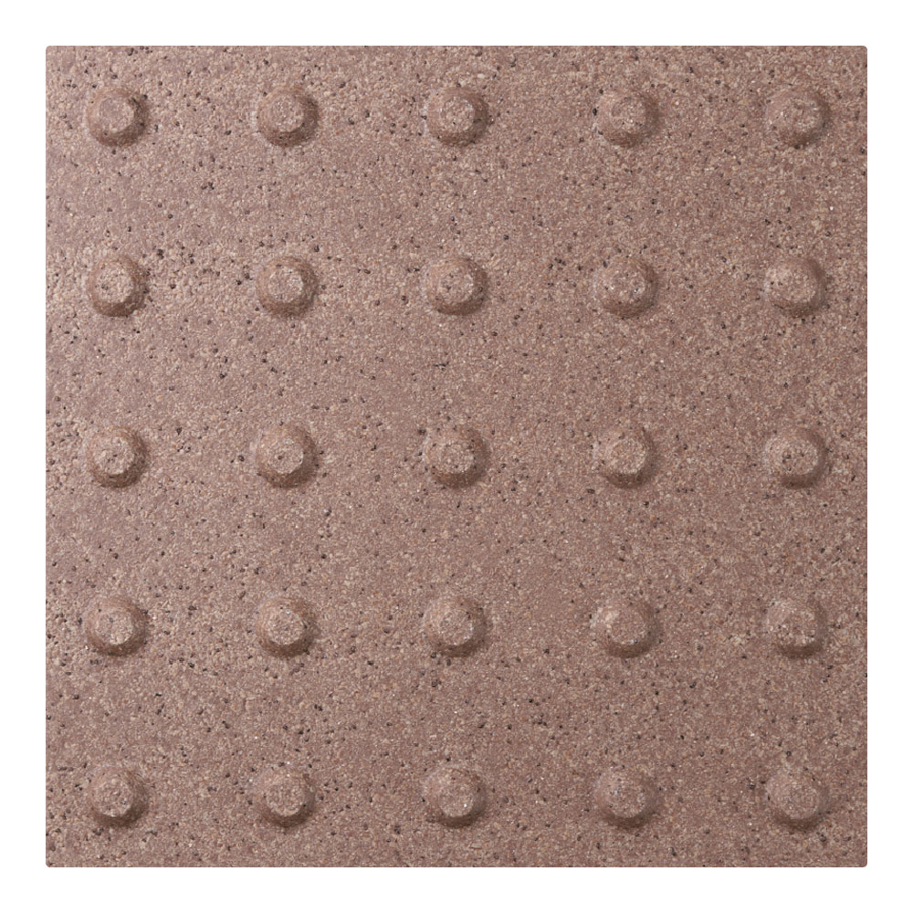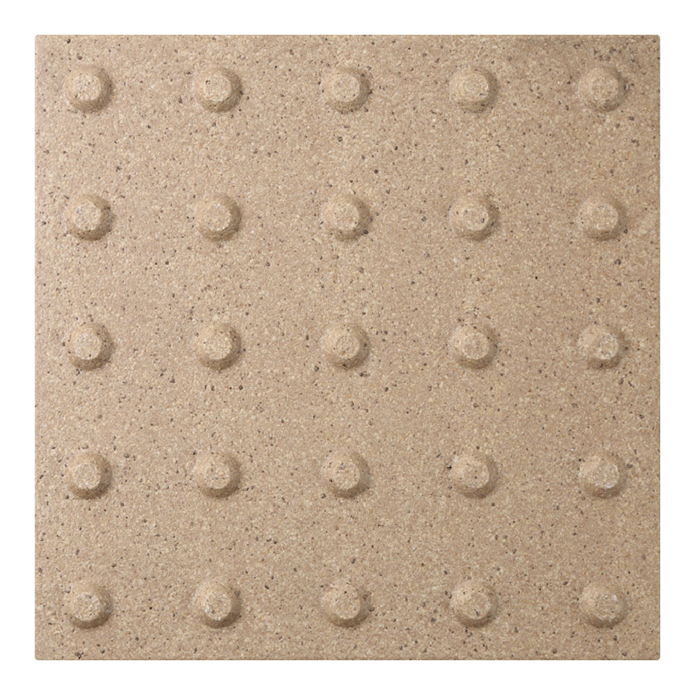 ●スロープ床タイルは車椅子での走行時にガタツキが少なく、高齢者のすり足歩行でもつまずきにくい突起部の高さを追求しました。凸凹がスムーズな歩行を支え、滑りにくい表面加工です。