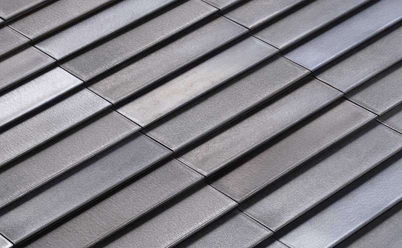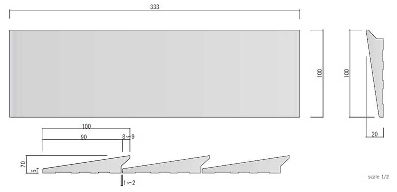 エッジのきいたシンプルな直線による重なりの美しさ。 伝統的な鎧張りの意匠に高温で焼くやきものの釉の魅力を感じる。 空間に特別な個性をつくる。 色は銀イブシ・アンティークゴールド