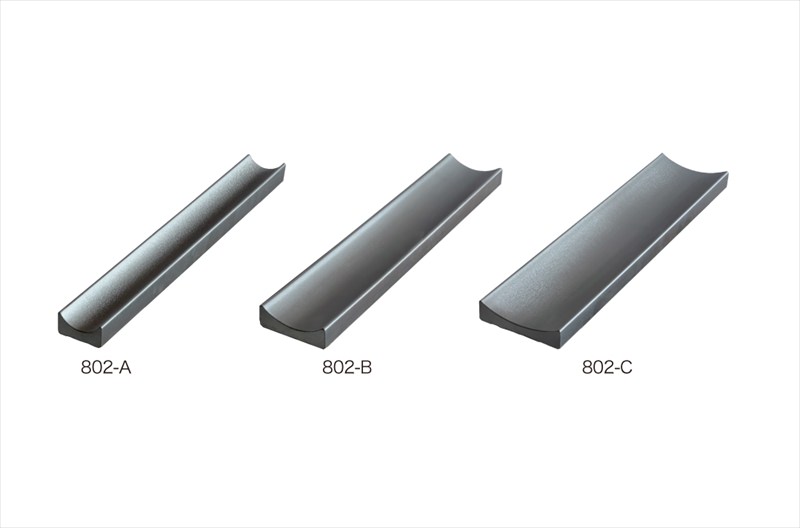 アールにくぼんだ少し長めのボーダータイル。 光を取り込むシンプルな連続性が美しい。 10mm程度の目地間隔がフォルムを際立たせる。 形状3種類 色はグレイッシュブラック・白釉 3種類の組み合わせにより様々なシンプルデザインが生まれる。