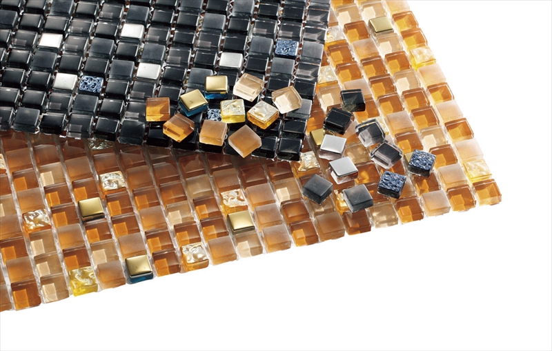 ガラスの透明な輝きと金・銀の硬質な輝きを組み合わせたガラスモザイクです。
