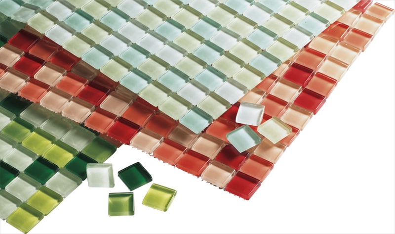 空間を華やかにするビビットカラーが特徴のガラスモザイクです。