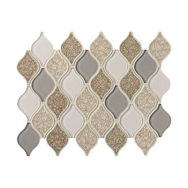 形状に特徴のあるガラスモザイクとタイルのミックス品です。 落ち着いた色合いで、ノスタルジックな印象に仕上がります。