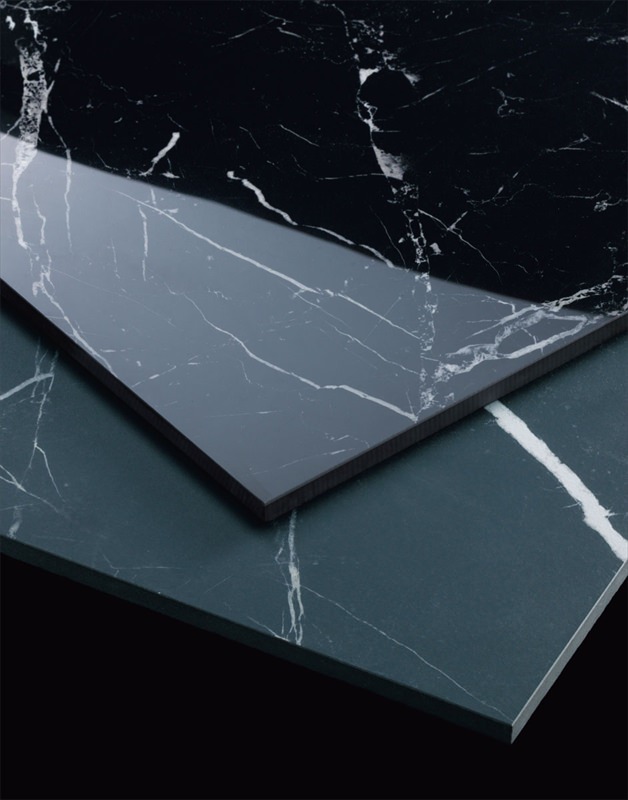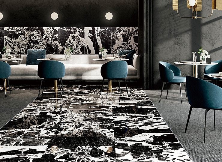黒さ・白さが際立つ大理石の筋模様や光沢を忠実に再現した床タイルです。 石の柄が活きる大きなサイズをラインアップ。高級な空間を演出します。