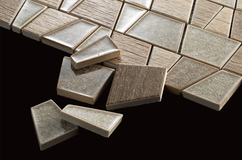 きらめく貫入釉と古木調の対比が新鮮なミックスモザイクです。 シックな空間のアクセントにお薦めです。