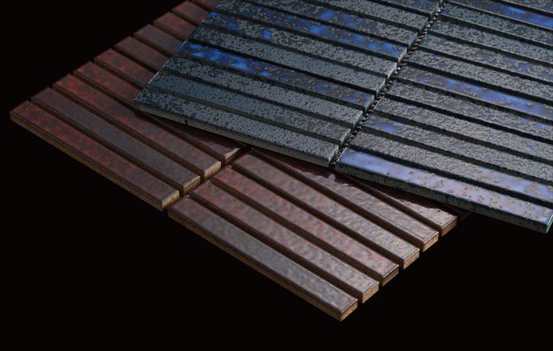黒字に差し込んだ艶やかな釉薬の色が特徴のボーダー形状のモザイクタイルです。重厚な和の雰囲気を感じさせるアクセント使いもおすすめです。