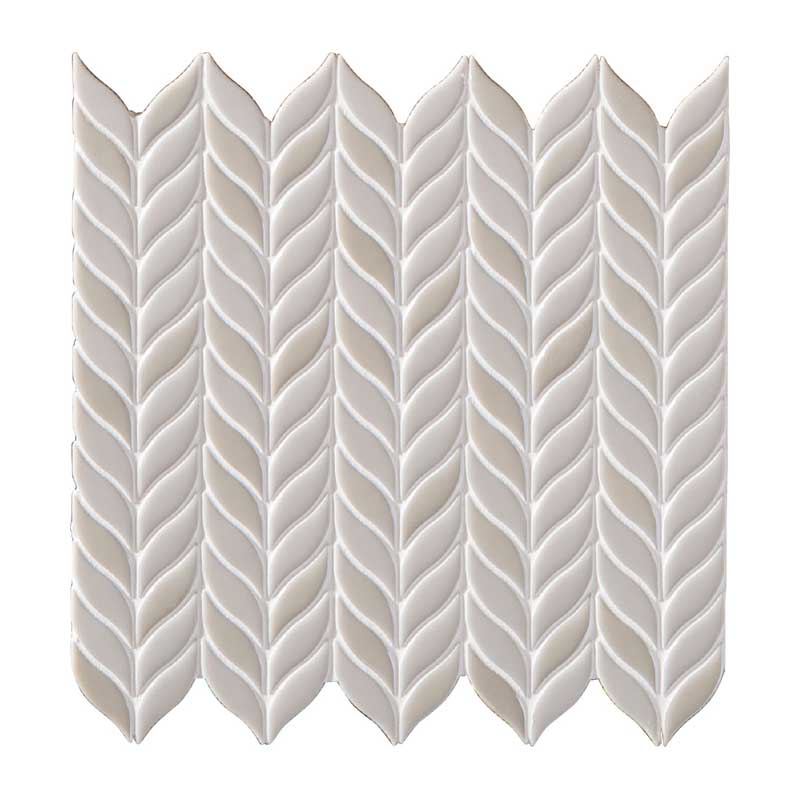 ブライトとラスターのふたつの質感が輝く葉っぱ形状のガラスモザイク形状です。