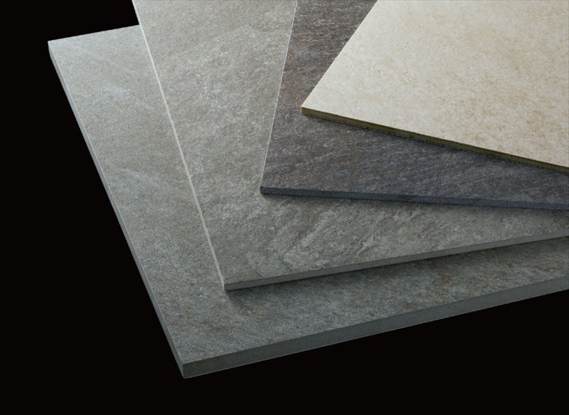 クォーツサイト特有の自然な色、柄バラツキが特長である有色素地の内外床タイルです。