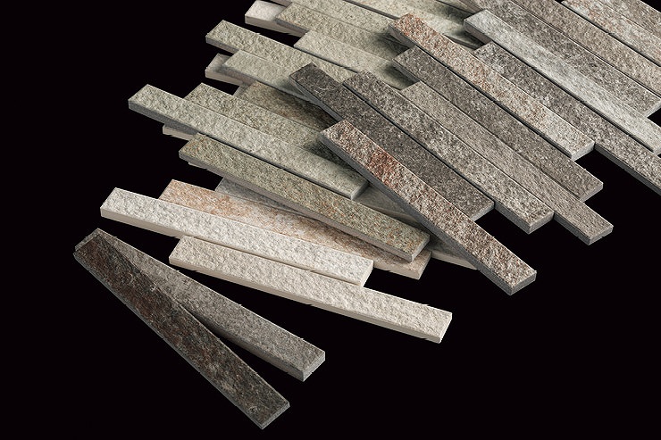 ●小端には、加飾を施していませんので、表面とは色合いが異なります。現物サンプルにてご確認ください。25×202角ネット張り(入隅用)は、入隅部分に同一厚さの粒をそろえることで、入隅の凹凸を軽減する役物ですが、意匠がついているため完全にフラットにはなりません。