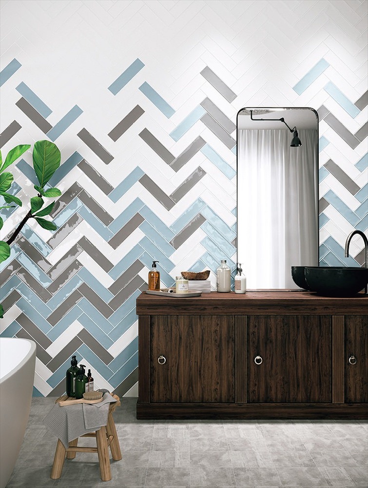 少しくすませたパステルカラーの釉薬と波打ったレリーフが特徴のタイルです。ナチュラルテイストのインテリアにお薦めです。