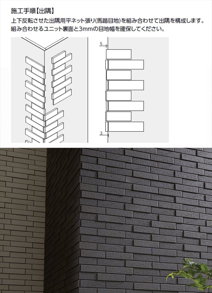 ●ユニット品の設定目地幅は縦・横とも3mmですが、タイル寸法公差等による目地幅のバラツキがあります。