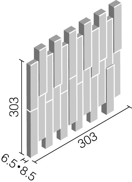 サイズ:150.5×24.25mm 厚さ:6.5・8.5mm 目地共シート寸法:303×303mm |