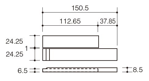 入隅用 目地共シート寸法:303×151.5mm サイズ:(112.65・150.5)×24.25mm 厚さ:6.5・8.5mm |