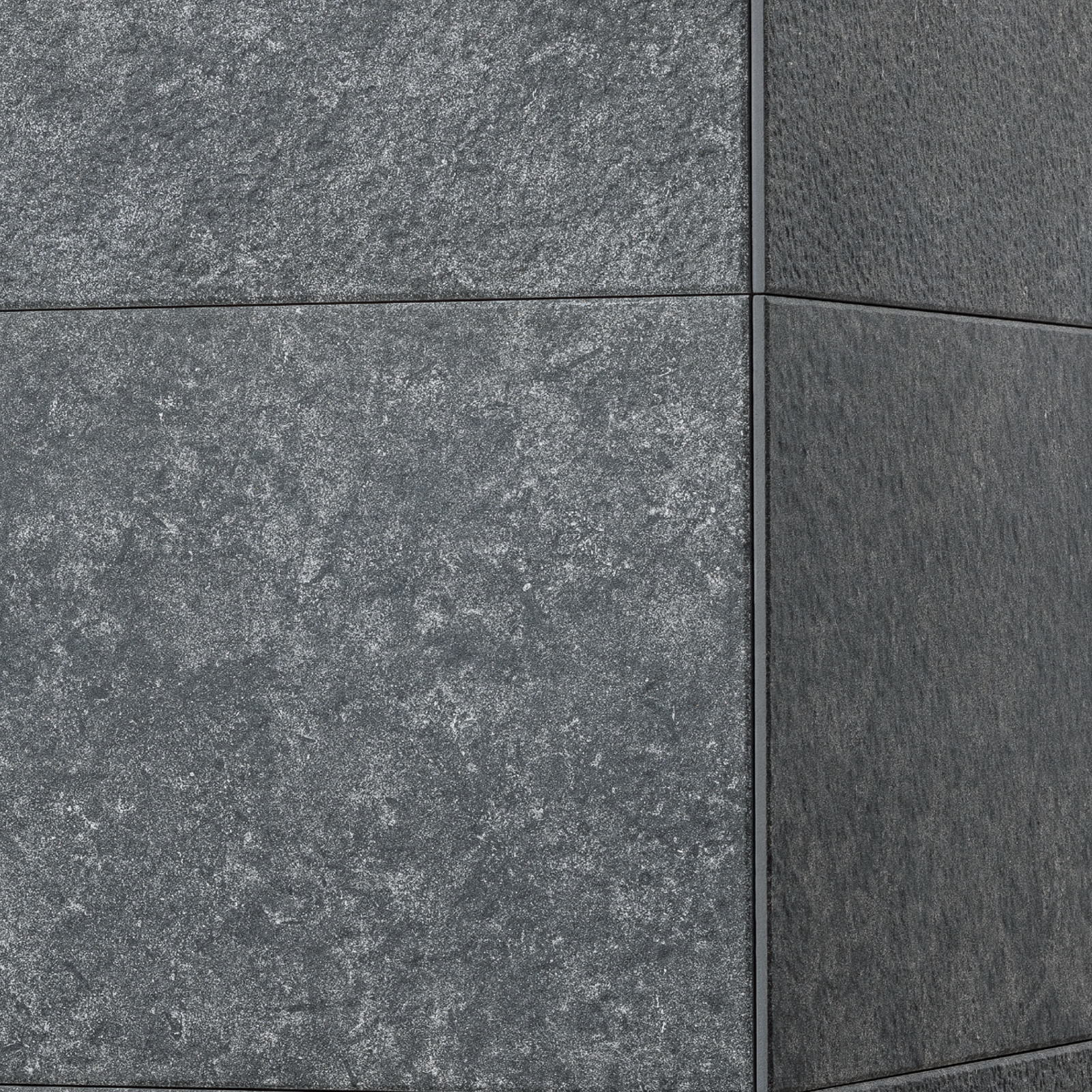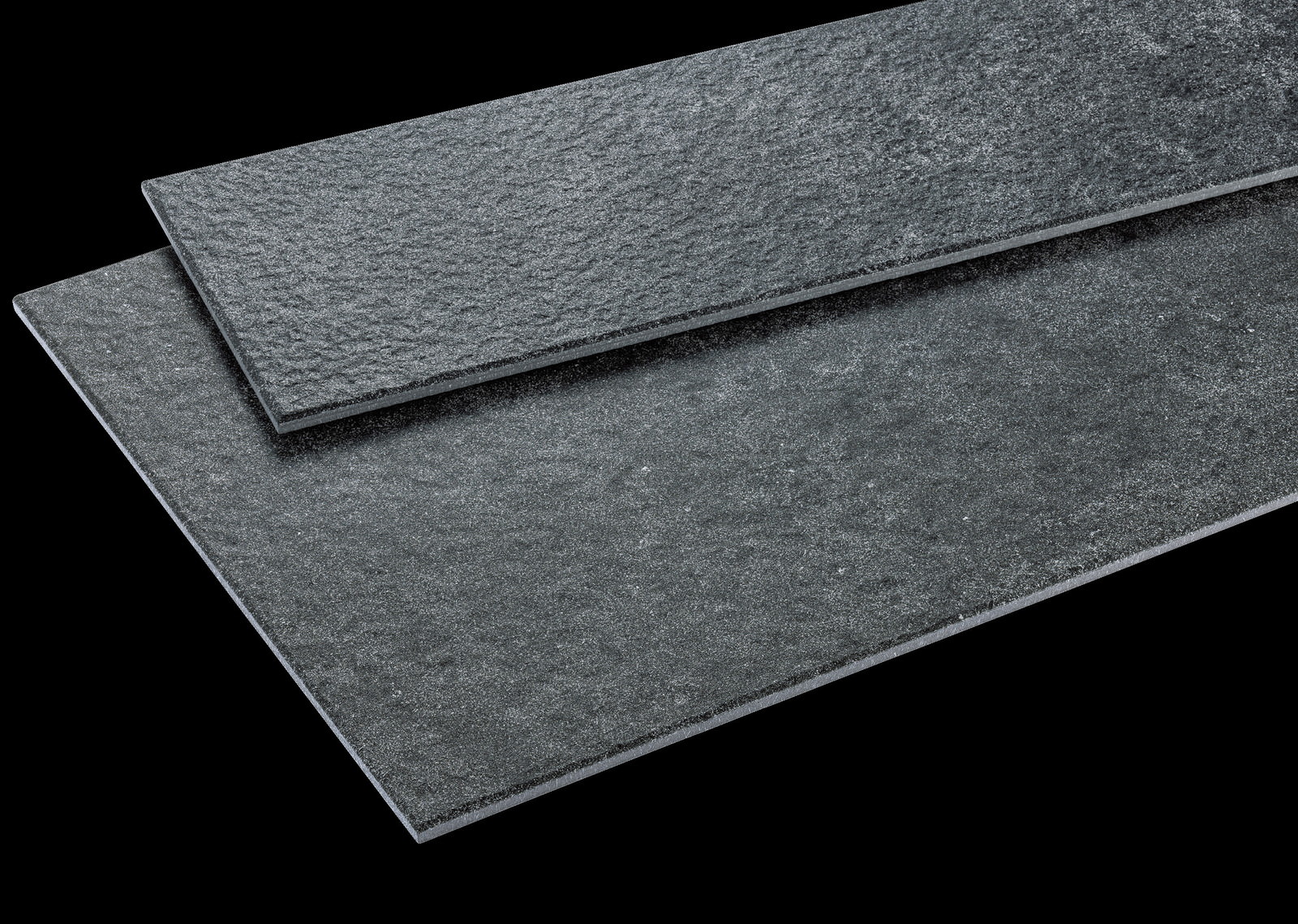 溶岩石の深い色合いと2つの形状を組み合わせたパターン張りが特長のデザインです。