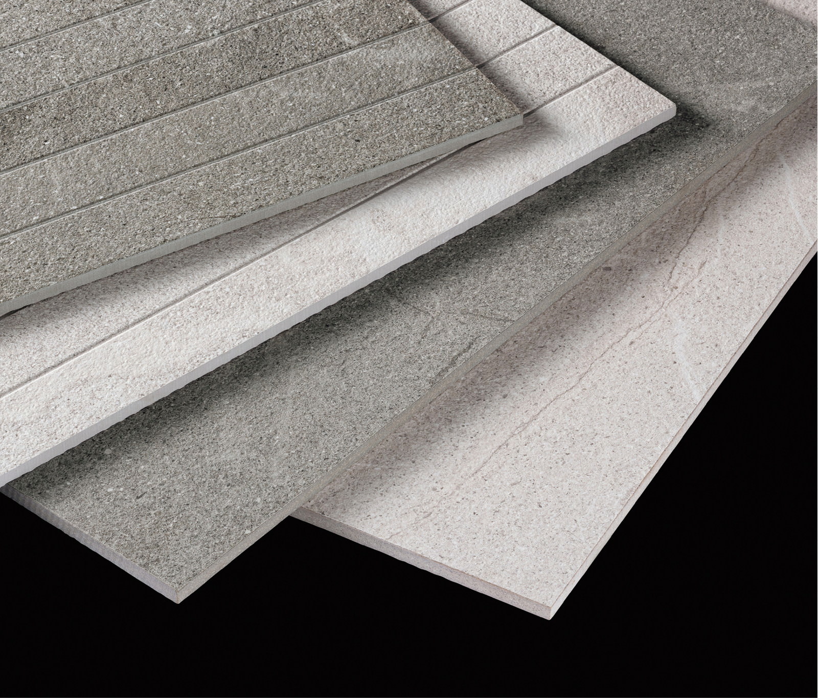 小さな石の粒や大理石・スレート柄を重ね合わせた、穏やかさとダイナミクスが調和するデザインで、モダン空間にお薦めです。