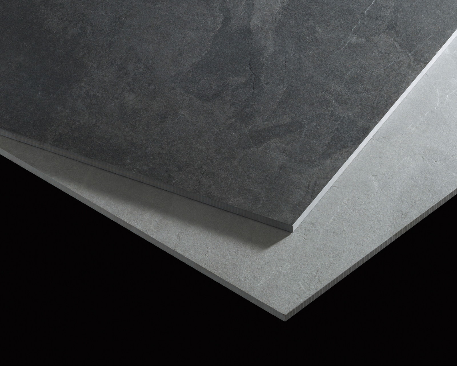 黒の石目が特長のブラジリアンスレートをモチーフにしたタイルです。内外空間にご使用いただけます。