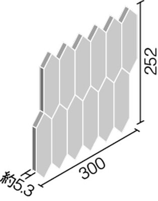 タイル実寸:約147×48mm 厚み約5.3mm 目地共シート寸法 : 300×252mm 1シート : 縦2枚×横6枚=12枚 ※多少の寸法誤差があります