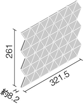 タイル実寸:約45.5×45.5mm(三角形) 厚み約8.2mm 目地共シート寸法 : 321.5×261mm 1シート : 縦6枚×横12枚=72枚 ※多少の寸法誤差があります |