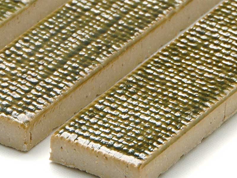 麻の布目模様。 優しいアースカラーの、懐かしくも新しいタイルです。 ボーダー平と100角平、かまぼこ形状のアクセントボーダーもあり、組み合わせてお楽しみいただけます。