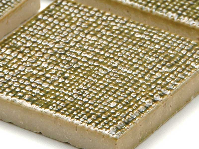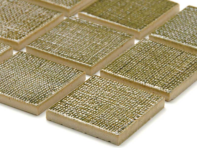 麻の布目模様。 優しいアースカラーの、懐かしくも新しいタイルです。 ボーダー平と100角平、かまぼこ形状のアクセントボーダーもあり、組み合わせてお楽しみいただけます。
