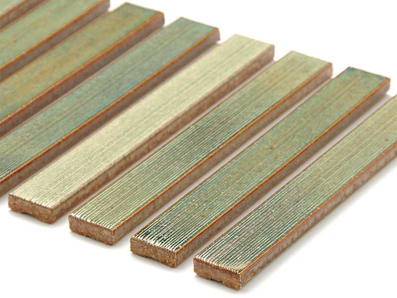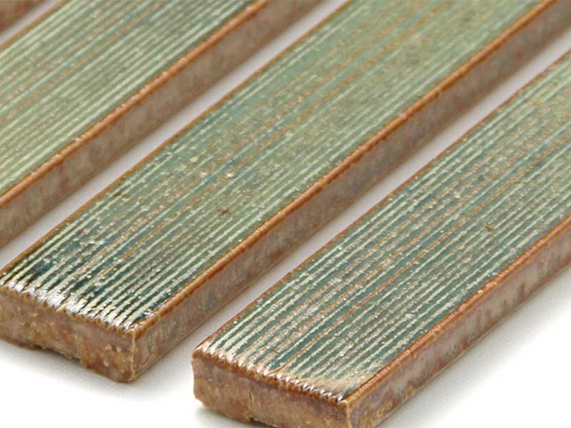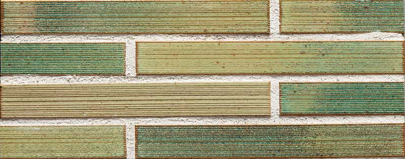 筋入り面状の平面と、変形の山形形状が特徴のボーダータイル。 組み合わせ次第でさまざまな陰影が楽しめ、存在感のある壁面を構成できます。