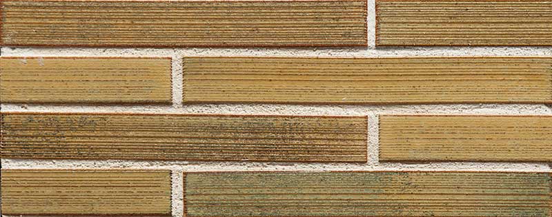 筋入り面状の平面と、変形の山形形状が特徴のボーダータイル。 組み合わせ次第でさまざまな陰影が楽しめ、存在感のある壁面を構成できます。