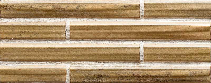 筋入り面状の平面と、変形の山形形状が特徴のボーダータイル。 組み合わせ次第でさまざまな陰影が楽しめ、存在感のある壁面を構成できます。
