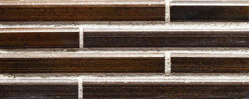 筋入り面状の平面と、変形の山形形状が特徴のボーダータイル。 組み合わせ次第でさまざまな陰影が楽しめ、存在感のある壁面を構成できます。