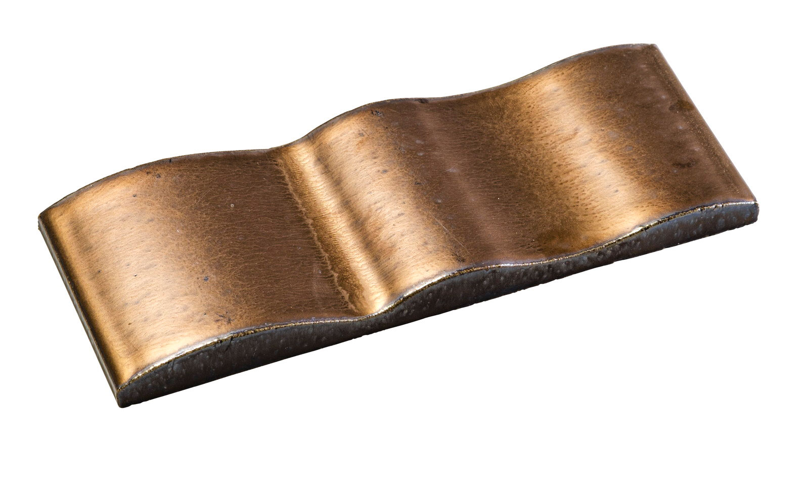 不規則な面状のタイルに金属釉を施しました。ダイナミックな形状と神秘的な色彩で、ラグジュアリーな空間を演出します。