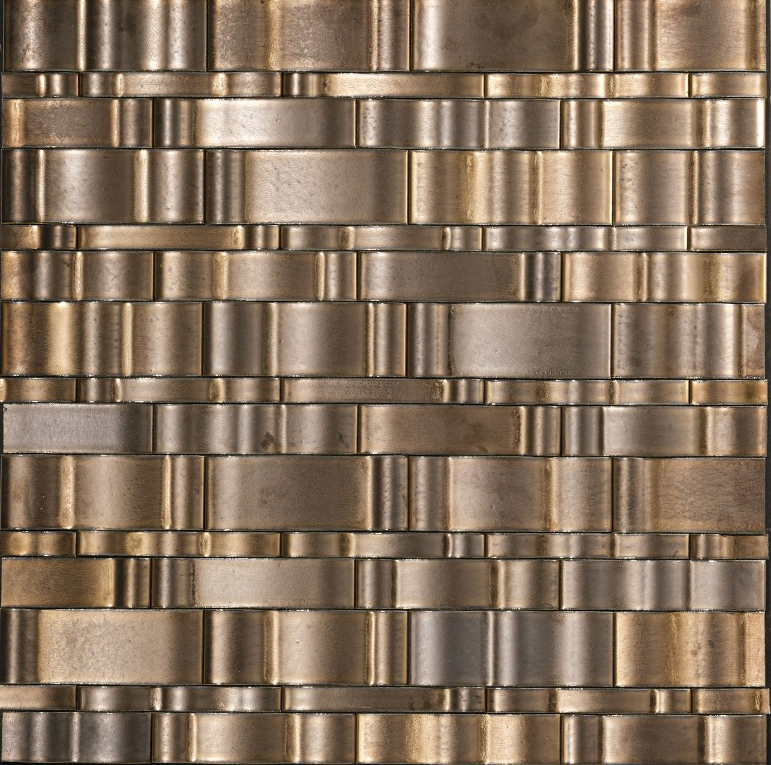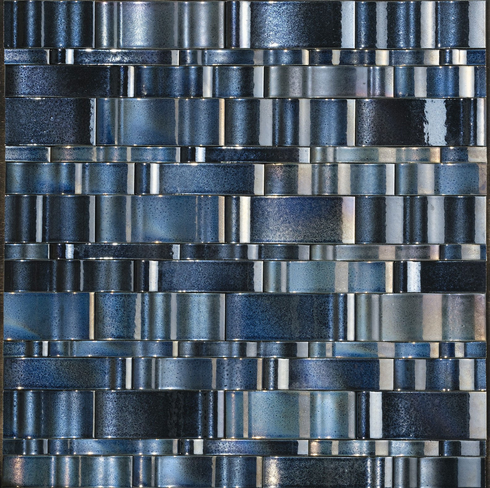 不規則な面状のタイルに金属釉を施しました。ダイナミックな形状と神秘的な色彩で、ラグジュアリーな空間を演出します。