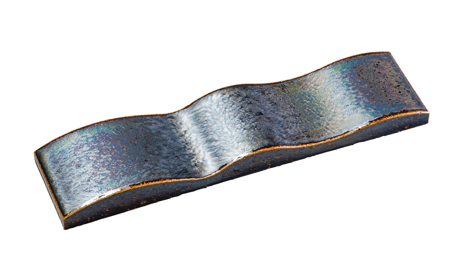 不規則な面状のタイルに金属釉を施しました。ダイナミックな形状と神秘的な色彩で、ラグジュアリーな空間を演出します。
