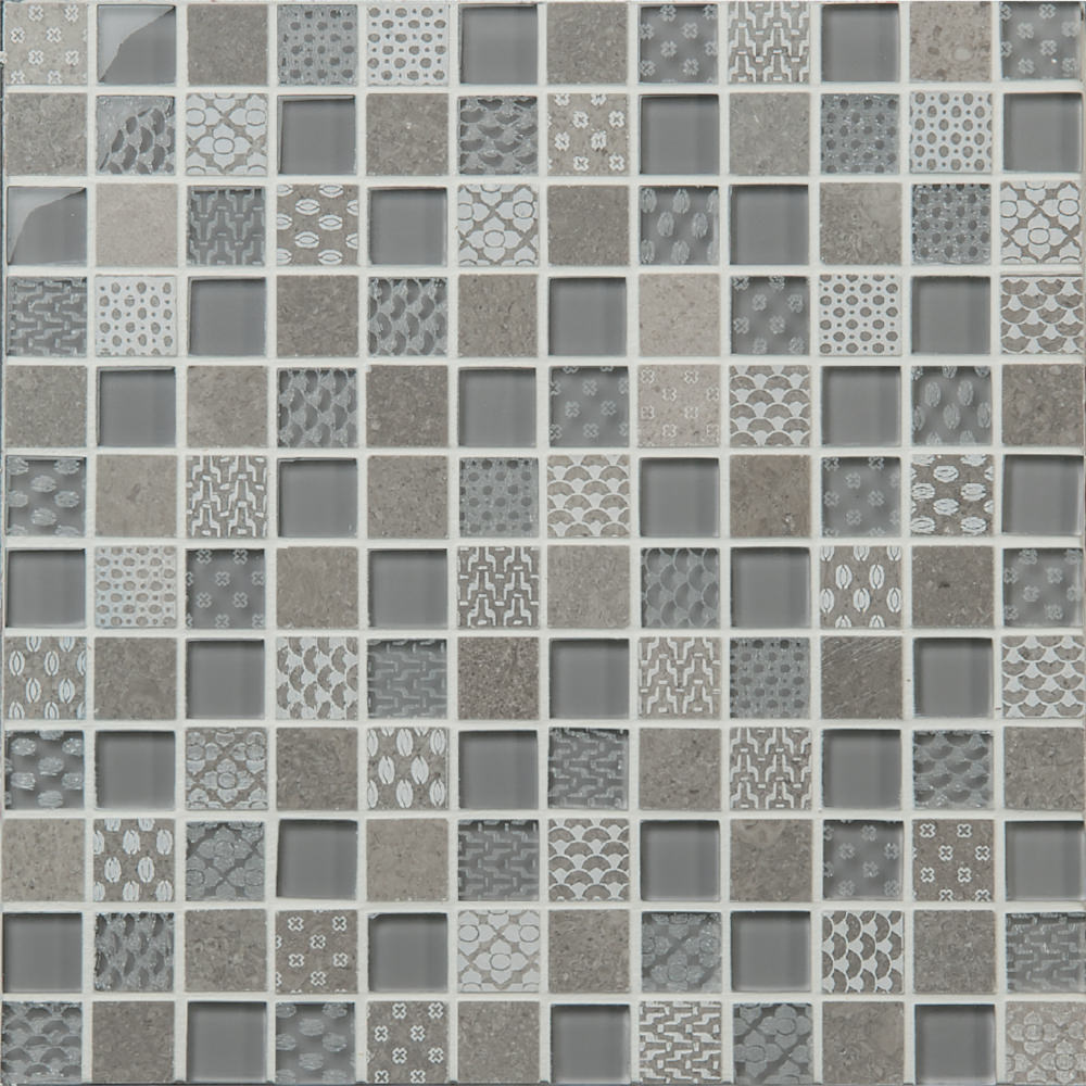 大理石とガラスを合わせ、エッジング加工で奥行き感を表したミックスモザイク。