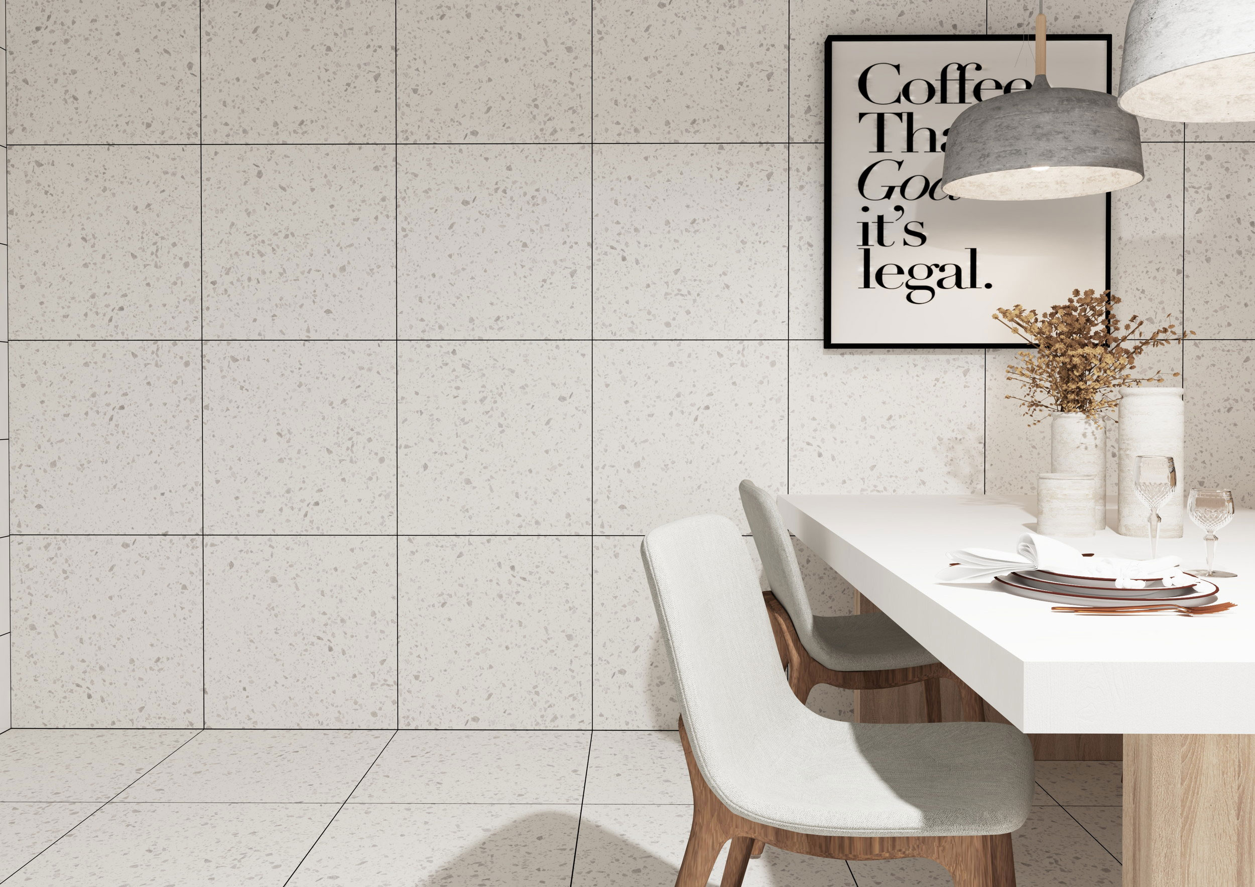 リバイバルトレンドであるテラゾーをタイルに表現しました。感度の高い空間に仕上げます。
