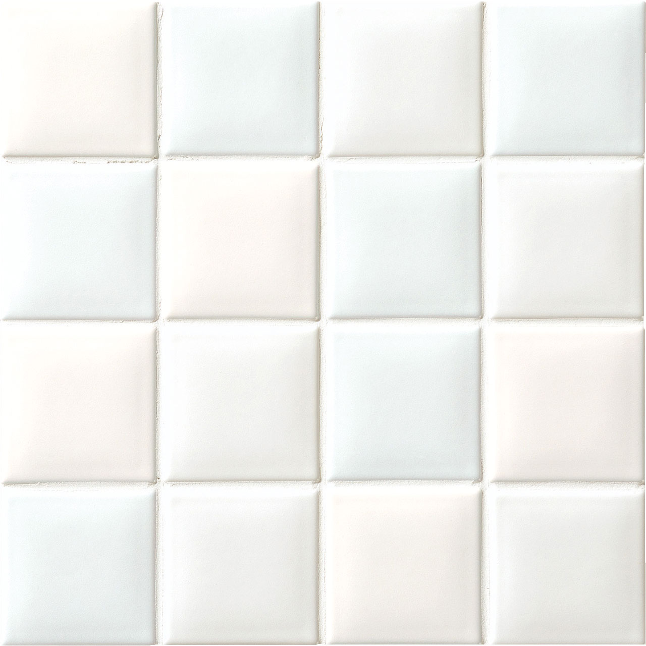 ふっくらとして柔らかさを感じさせる凸面状のタイル。3種類のホワイトは繊細なニュアンスで色彩を表現しています。