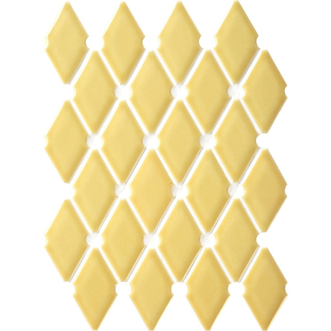 テキスタイルのような柔らかな丸みを帯びたフォルムを、艶やかなブライト釉で包みこみました。上品なダイヤ模様を編み出す貼りパターンが、オーセンティックな空間を創造します。