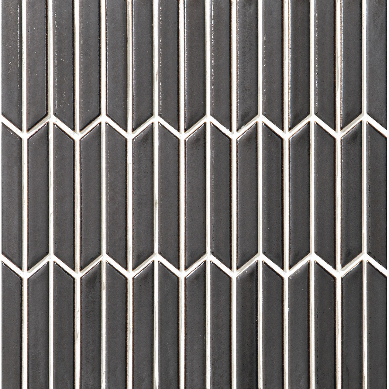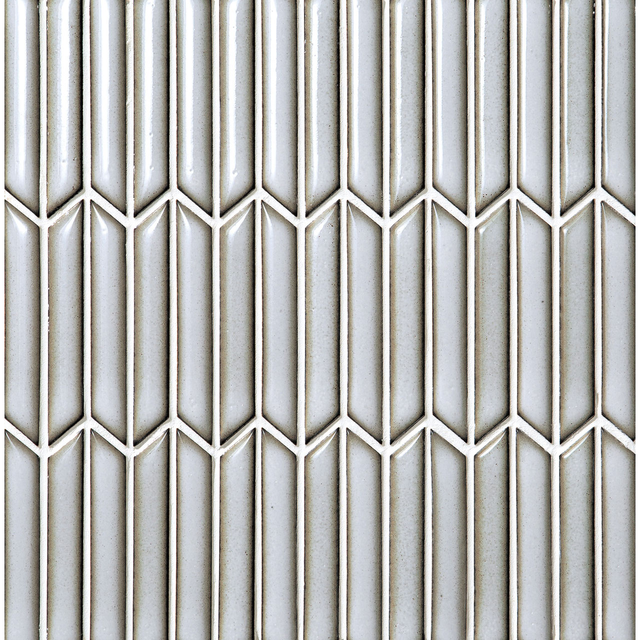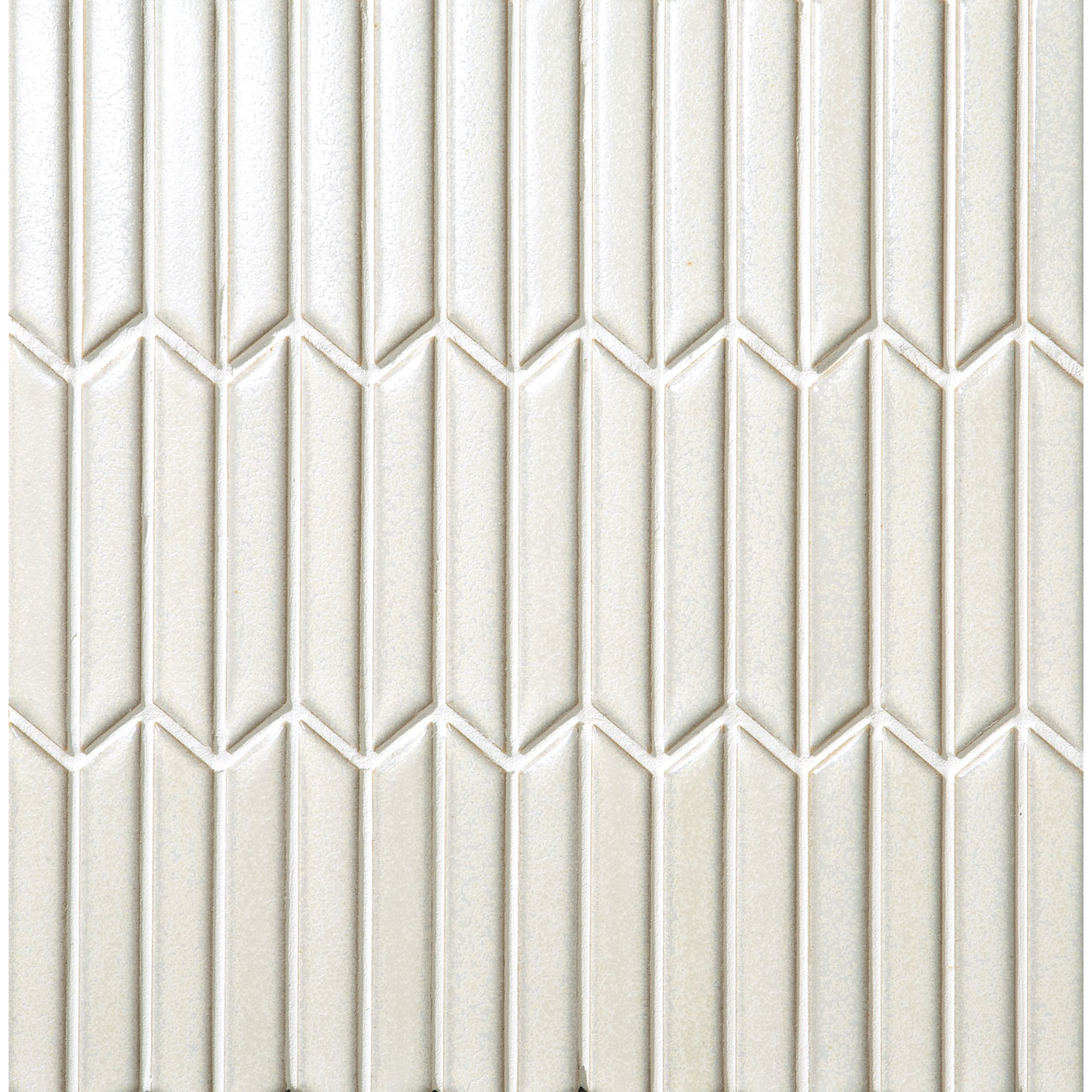 矢筈の形をモチーフにしたユニークな形状のモザイクタイルを、モダンな色調で表現しました。