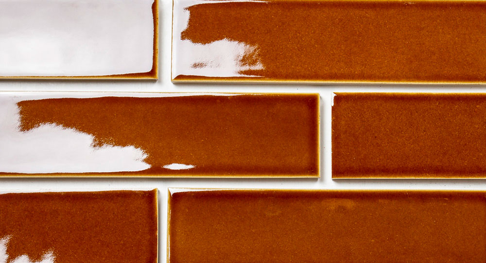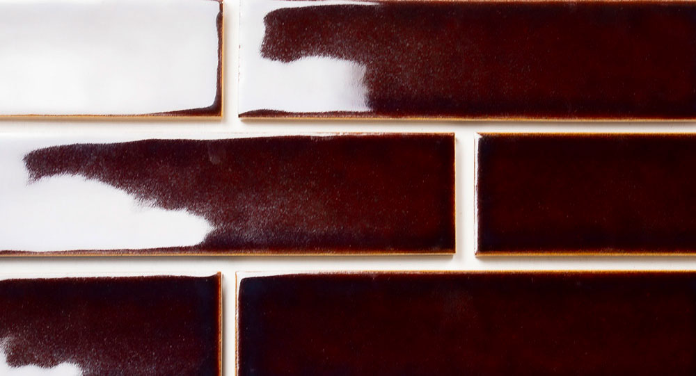 重厚感のあるボーダータイルにレトロなガラス釉を施しました。釉薬の濃淡が味わいある壁面を演出します。