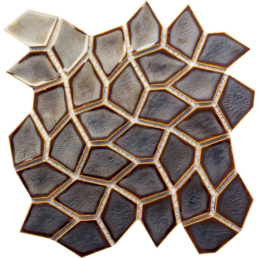 どこまでも続いていく五角形の模様はタイルの醍醐味を想起させ少しくぼんだ面には豊かな焼き物の色彩が広がります。単色でもMIXカラーでもお好きな組み合わせでオンリーワンのタイル壁面を演出できます。