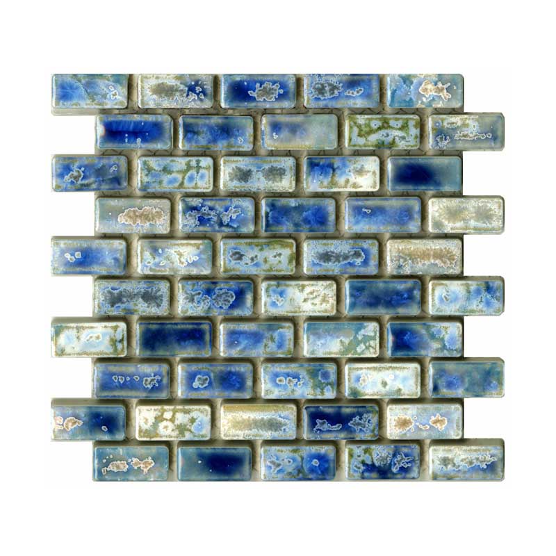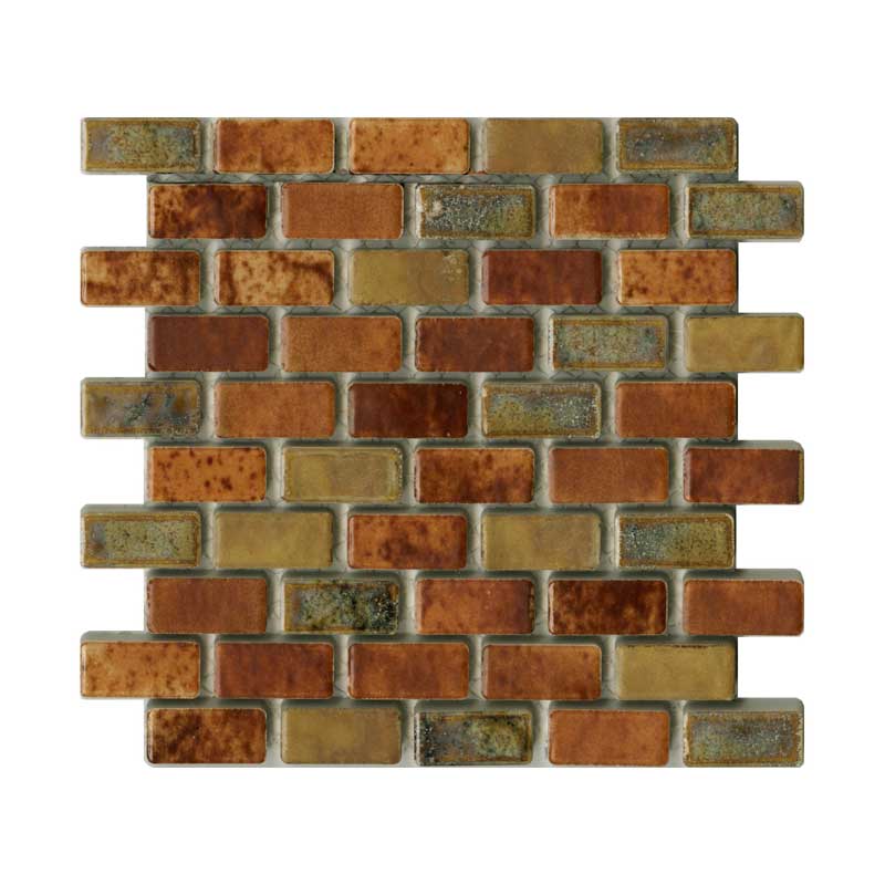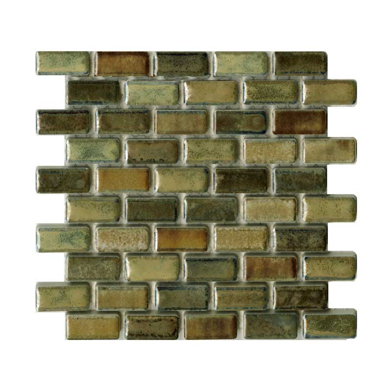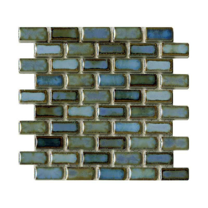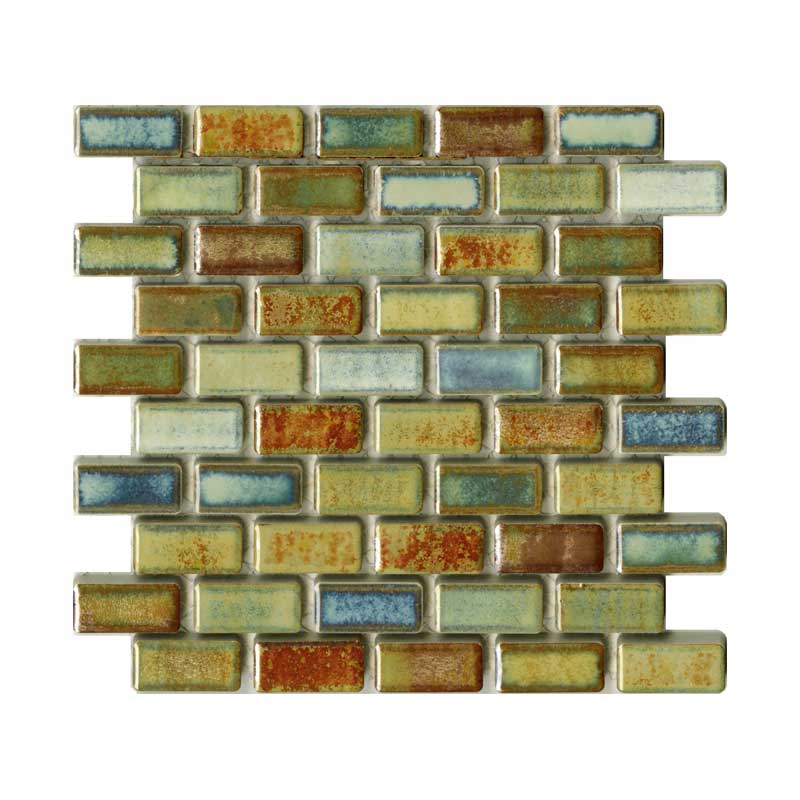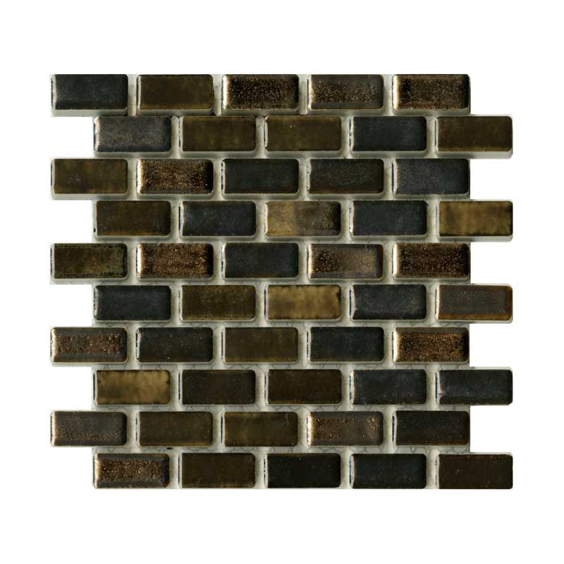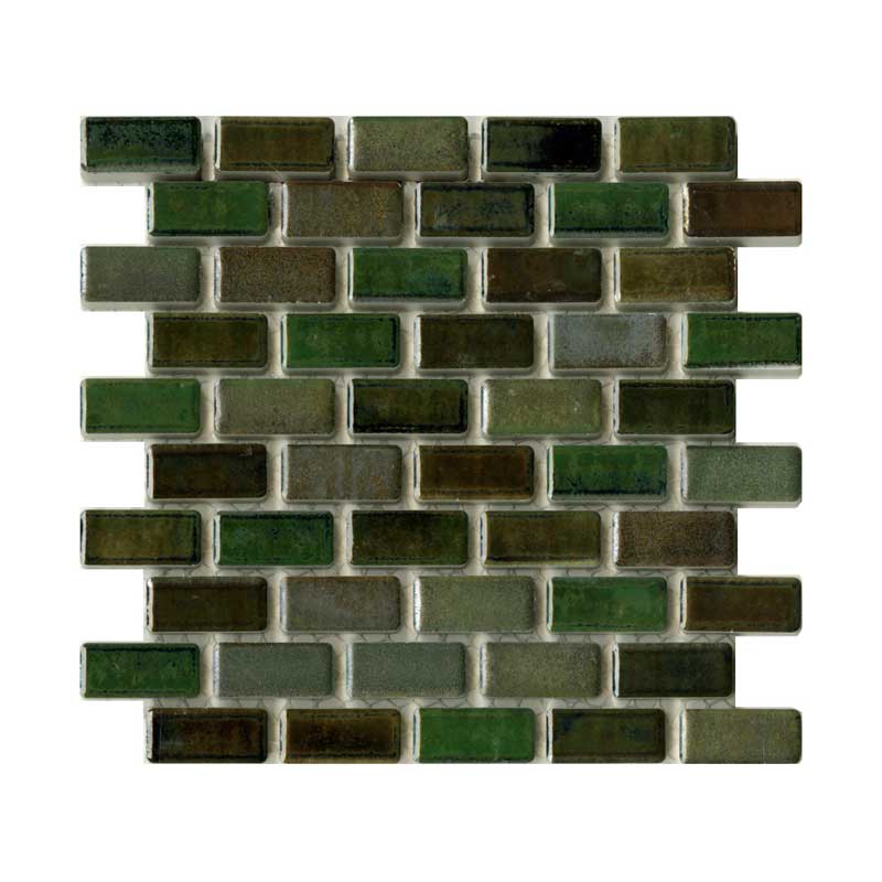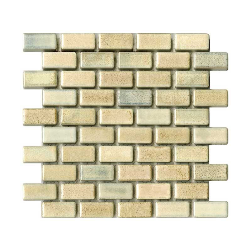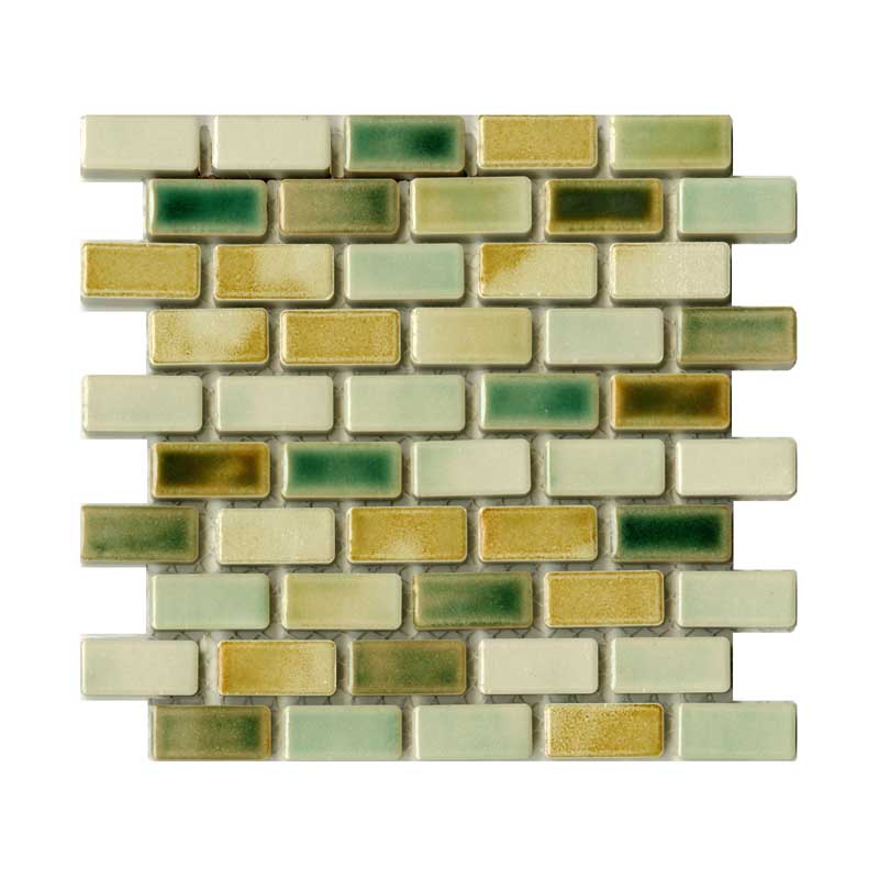 1ピースが27×12mm角の15mm二丁サイズと呼ばれる可愛らしいサイズのタイルです。 「バスケットウェーブ(バスケット)」と「ランニングボンド(馬踏み目地)」という二種類の目地パターンをご用意しました。