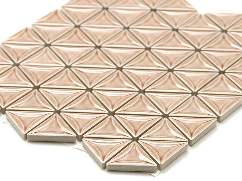花模様や円形など見え方の変わる伝統的な模様が素敵な三角形の内装タイル。 伝統的な柄でありながら和洋を問わない空間演出が可能です。