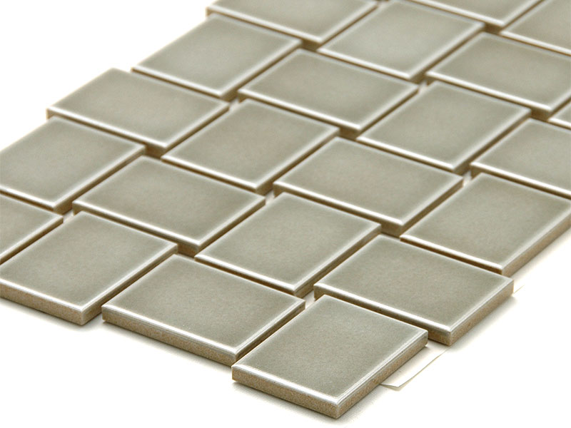 長方形のタイルを縦・横に配置し市松模様に組み合わせた内装タイル。 個性的でオシャレな壁面演出が可能です。 キッチン、洗面などの水回りや、リビング、店舗内装にもおすすめです。