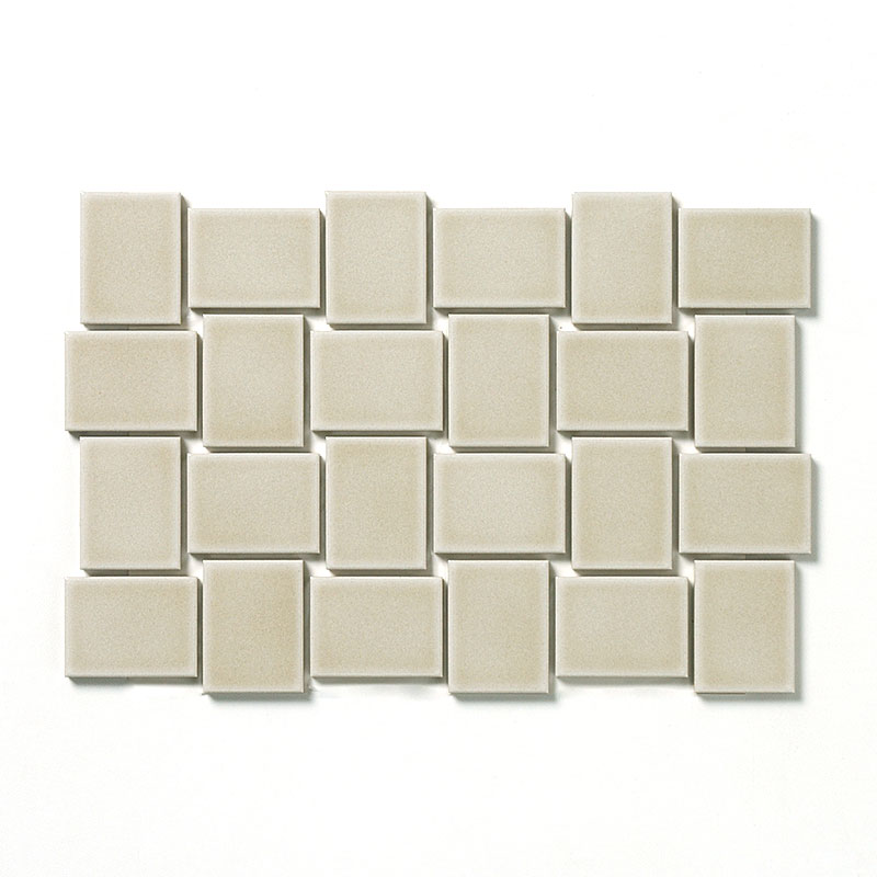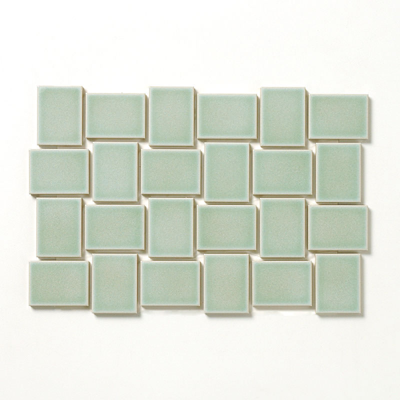 長方形のタイルを縦・横に配置し市松模様に組み合わせた内装タイル。 個性的でオシャレな壁面演出が可能です。 キッチン、洗面などの水回りや、リビング、店舗内装にもおすすめです。