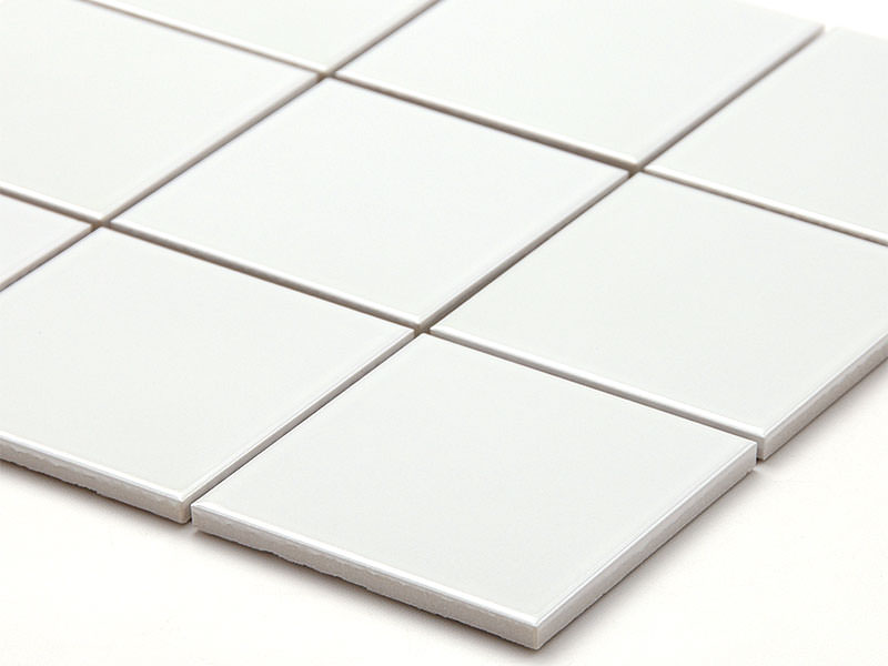 ツヤのある白い釉薬を施した白いタイルシリーズ。 モザイクタイルから200×100角まで、計7種類の豊富なサイズ展開で、組み合わせても楽しめます。 サイズにより厚みが微妙に違うので組み合わせ方によっては立体感が出ます。 お手入れのしやすいツヤのあるタイルなので、キッチンや洗面など水回り、清潔感の求められる店舗などにおすすめです。 すっきりとした形状をしたシンプルな白いモザイクタイルです。