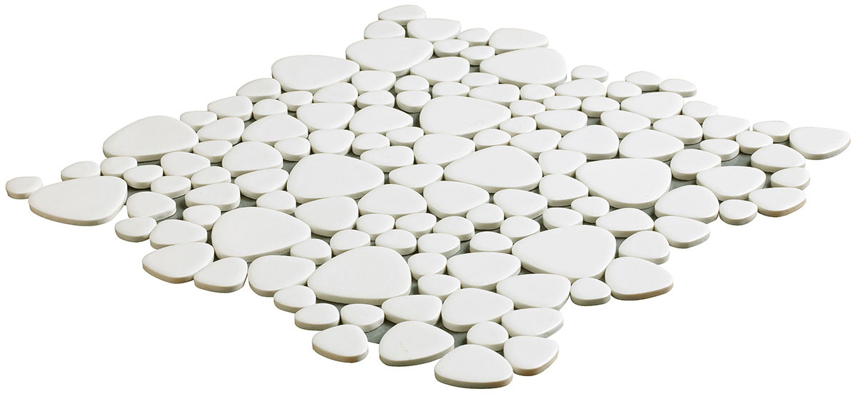 レトロな雰囲気と現代的なデザインを融合させて上品で可愛らしい玉石モザイクタイル。滑らかな丸みが、空間に温かみを添えてます。