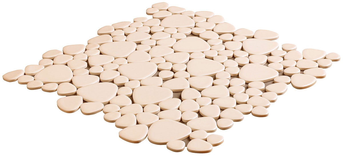 レトロな雰囲気と現代的なデザインを融合させて上品で可愛らしい玉石モザイクタイル。滑らかな丸みが、空間に温かみを添えてます。