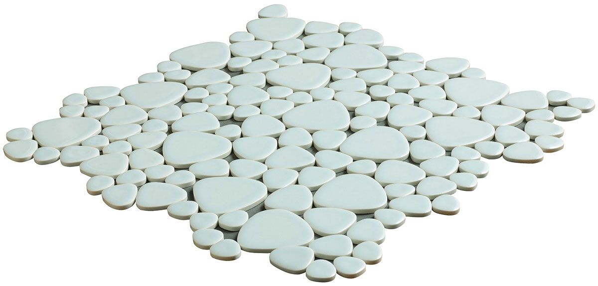 レトロな雰囲気と現代的なデザインを融合させて上品で可愛らしい玉石モザイクタイル。滑らかな丸みが、空間に温かみを添えてます。