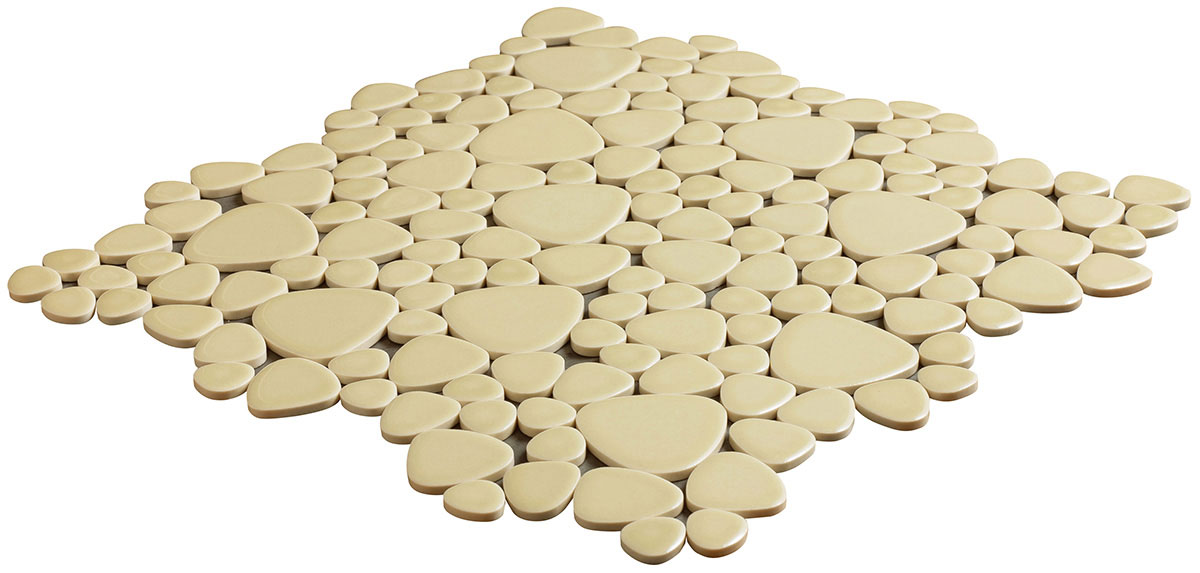 レトロな雰囲気と現代的なデザインを融合させて上品で可愛らしい玉石モザイクタイル。滑らかな丸みが、空間に温かみを添えてます。