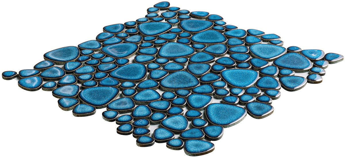 レトロな雰囲気と現代的なデザインを融合させて上品で可愛らしい玉石モザイクタイル。滑らかな丸みが、空間に温かみを添えてます。