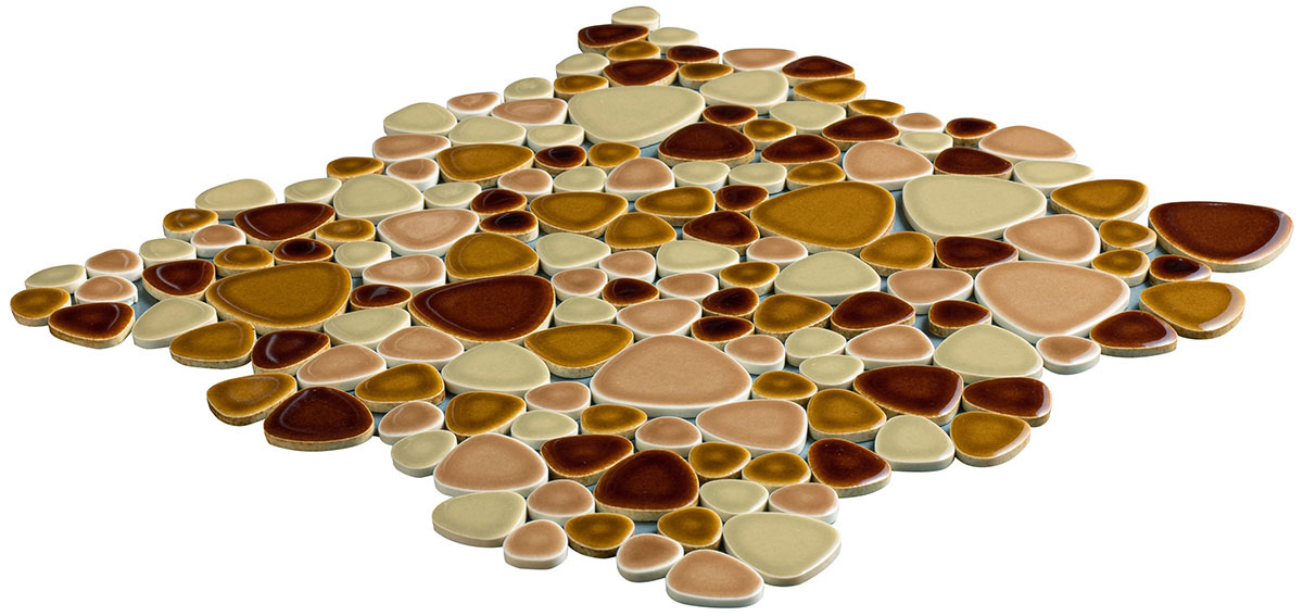 レトロな雰囲気と現代的なデザインを融合させて上品で可愛らしい玉石モザイクタイル。滑らかな丸みが、空間に温かみを添えてます。